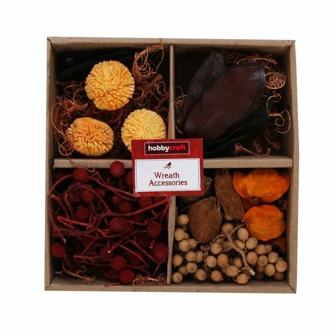 The Autumn Wreath Accessories Set is the perfect way to decorate a wonderful seasonal wreath design. Bringing together the warm colours of autumn, the natural details will effortlessly transform your wreath base.