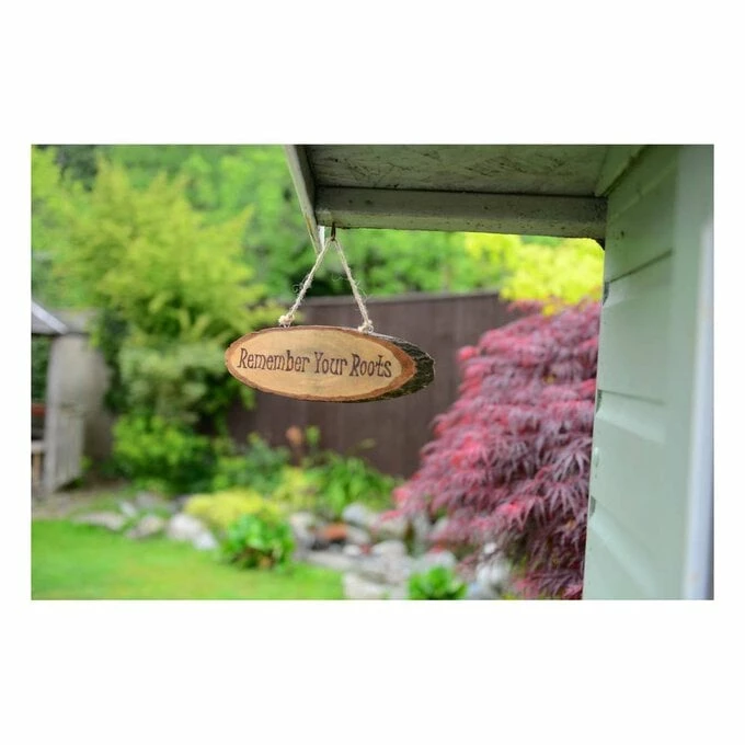 The sign measures 9 x 27 x 2 cm, and comes ready to hang on brown twine. You can easily replace this with ribbon or twine of your choosing, if you wish to add a touch of colour to your piece.