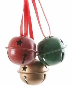 Get ready for the festive season with these festive Jingle Bells. In gold, green and red with cut-out stars, these sweet hanging decorations will add a wonderfully festive touch wherever you display them.